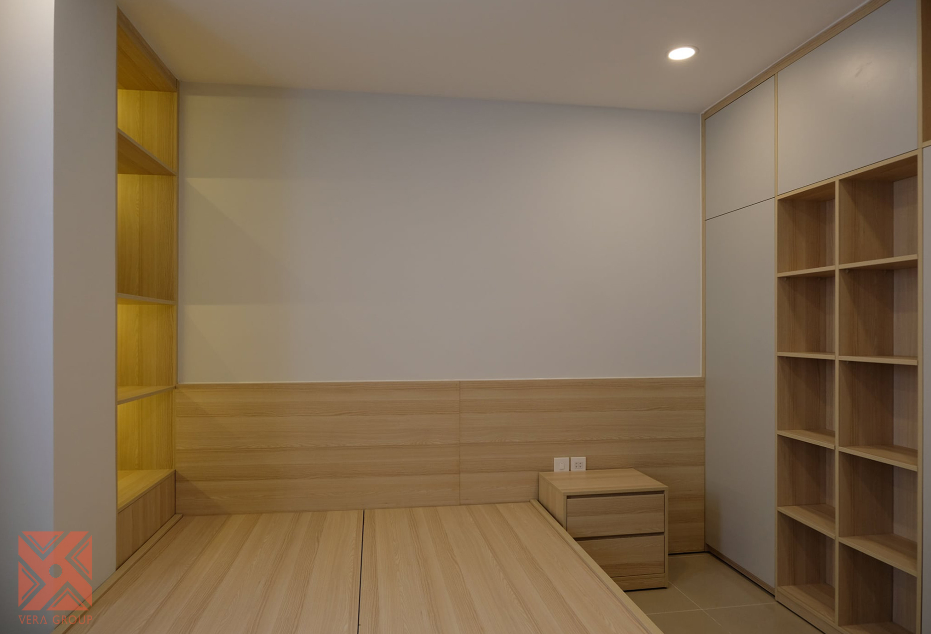 Kiến trúc sư đã thiết kế cải tạo từ căn hộ 3 PN thành 2 PN đẹp như mơ, không gian tiện nghi với bố cục rõ ràng. Đáp ứng đầy đủ nhu cầu về sinh hoạt của chủ nhân đồng thời tạo ra những khoảng không gian mở tạo sự gắn kết cho các thành viên trong gia đình.