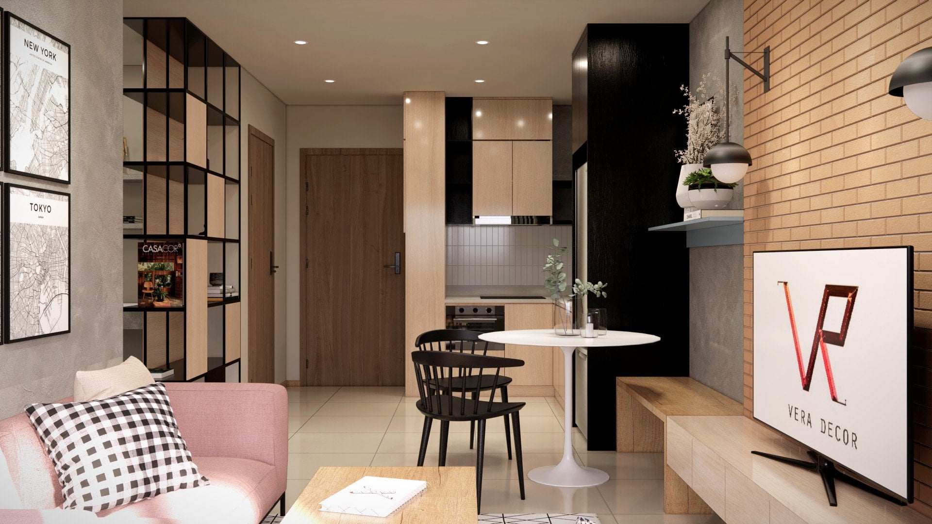Thiết kế nội thất căn hộ Origami Vinhomes Grand Park một phòng ngủ cộng với mong muốn ở lâu dài và thiết kế sao cho phù hợp với gia đình trẻ mộc mạc giản dị.