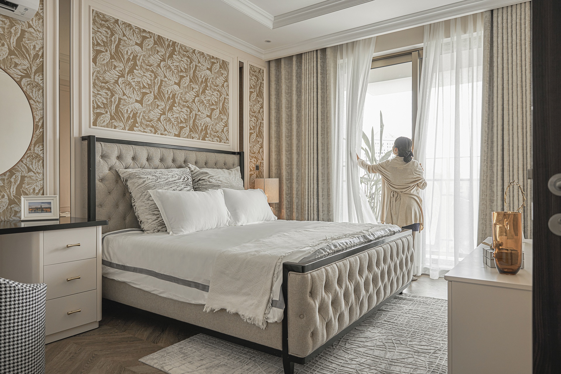 Căn hộ nằm trong dự án D’Lusso, TP.HCM với phong cách thiết kế tân cổ điển cùng vẻ đẹp hài hòa, trang nhã nhưng không kém phần hiện đại, đáp ứng mọi công năng.